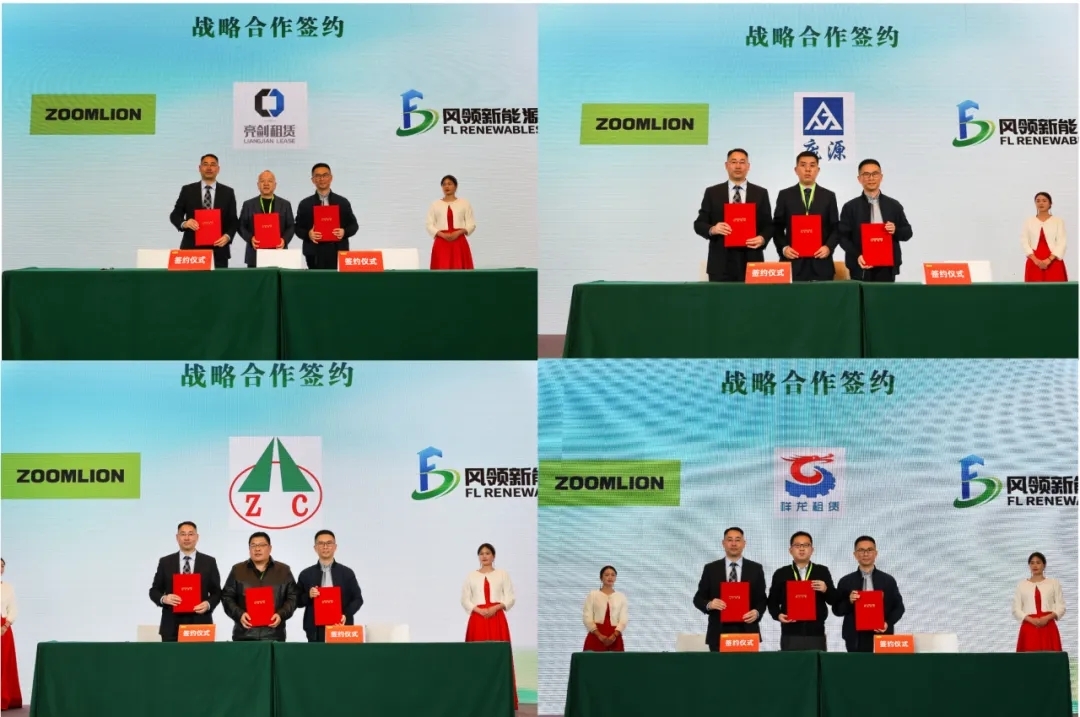 在同期举行的战略合作签约仪式上,中联重科与塔筒头部企业上海风领新能源有限公司,以及吊装领域领军单位——广东亮剑工程装备服务有限公司、上海庞源机械租赁有限公司、广州众程机械设备有限公司、郑州祥龙建筑机械租赁有限公司,共同签订了风电吊装三方合作协议。主机厂、塔筒厂与吊装单位紧密协同,共同建立风电吊装施工的新标准与新范式,推动行业从单点突破走向链式协同,助力风电产业高质量、可持续发展,为国家“双碳”目标的实现贡献力量。